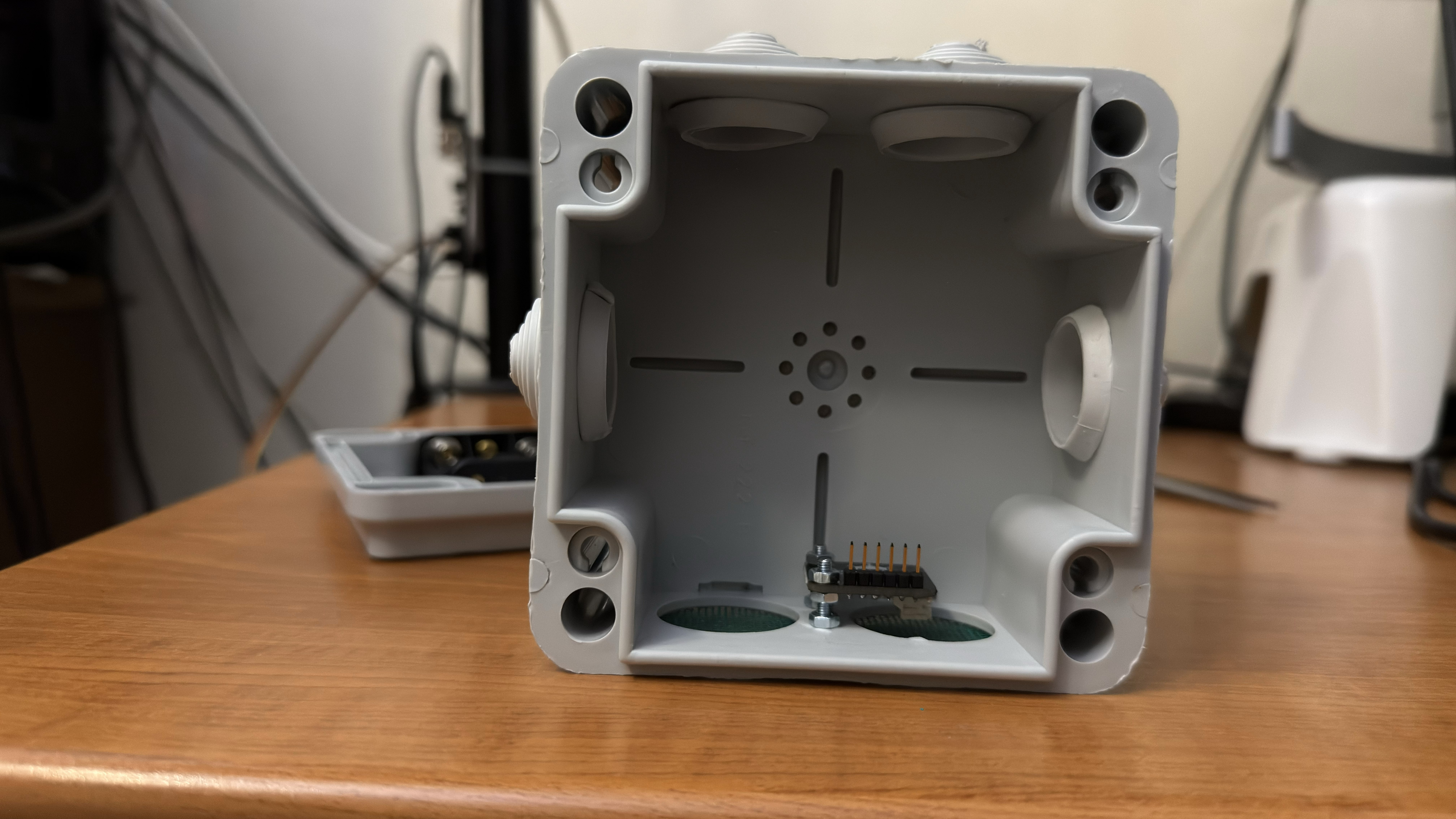 The goal is to prevent water from entering, especially since it's windy and raining heavily here (which is quite common), but at the same time, to avoid interfering with the sensor readings.